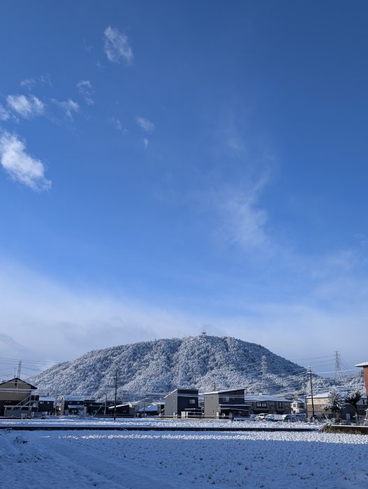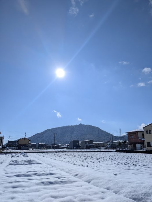 今年も早や、ひと月が経ちました。雪の日が続き、日陰は根雪状態。今日も吹雪いています。粟野の雪景色を眉山を中心に写真で紹介しますね。