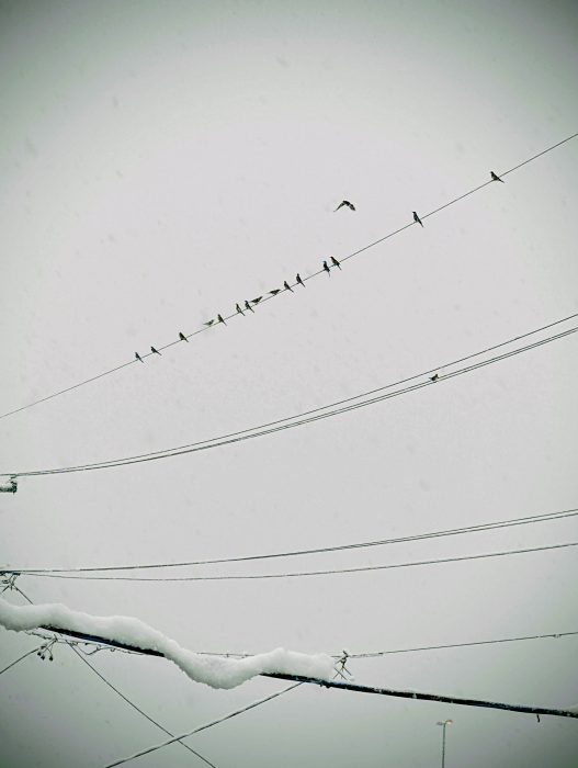 私が生まれて最初の記憶は雪なのです。曾祖母の背中におんぶされた視線の先には、明け放たれた“大戸口”(入り口)がありました。“町家”の暗闇を四角く切り取った空間に、ボタン雪がと降りしきっていました。家の外も夕暮れのように暗いはずなのに、そこだけ鮮烈な眩しさを生み出し、幼い私に一瞬の記憶を残したのです。