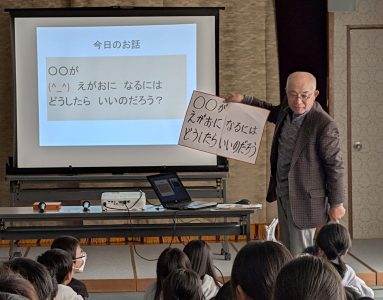 市の人権教育推進講師・舟橋和宏先生が「みんなが えがおに なるために」をテーマに、分かりやすく、親しみやすくお話しされました。